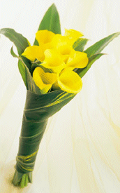 Może zamiast sztampowych wzorcowych wiązanek zaryzykować coś orginalnego i nietypowego? Bukiet z kwiatów kalii i liści imbiru może być bardzo intrygującą propozycją. Żółte kalie nie każdemu przypadną do gustu – ale dzięki różnokolorowym liściom imbiru taką wiązankę można utrzymać w dowolnej kolorystyce dzięki czemu będzie pasować do każdego stylu.